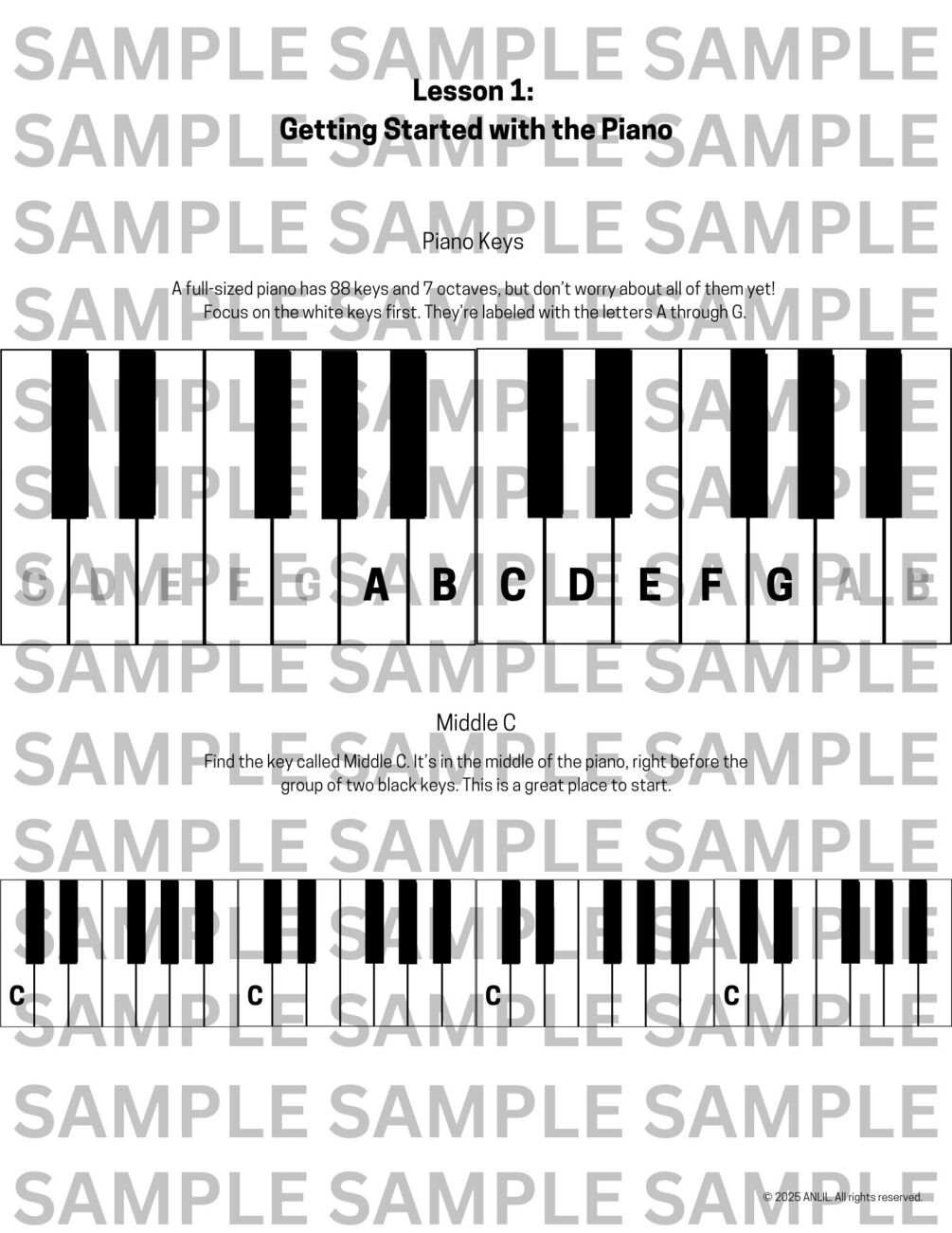This beginner piano lesson is designed to help you learn the basics, starting with finding Middle C. With 5 pages of clear and simple instructions, this lesson includes helpful information, facts, a questionnaire, and a worksheet. It’s crafted with neurodivergent learners in mind, ensuring an easy-to-follow, straightforward approach for all students.